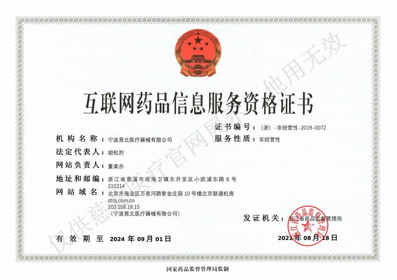 版權(quán)所有:寧波慈北醫(yī)療器械有限公司 浙ICP備19045460號 技術(shù)支持:浙江華企 互聯(lián)網(wǎng)藥品信息服務(wù)資格證書:(浙)-非經(jīng)營性-2019-0072