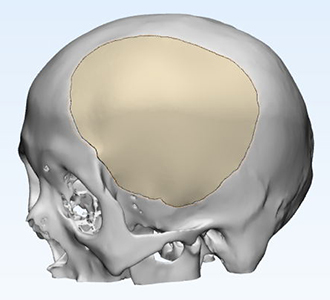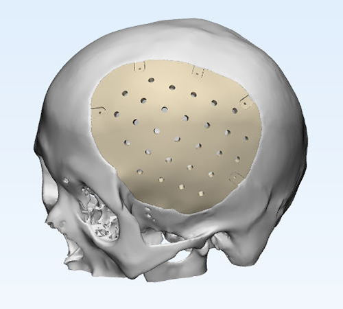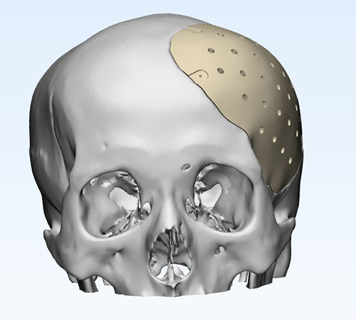 因患者缺損部位存在腦組織塌陷,皮膚張力可能存在不足,因此給予建議略微降低修補(bǔ)部位peek弧度;設(shè)計完成后請臨床醫(yī)生確認(rèn)設(shè)計方案。
