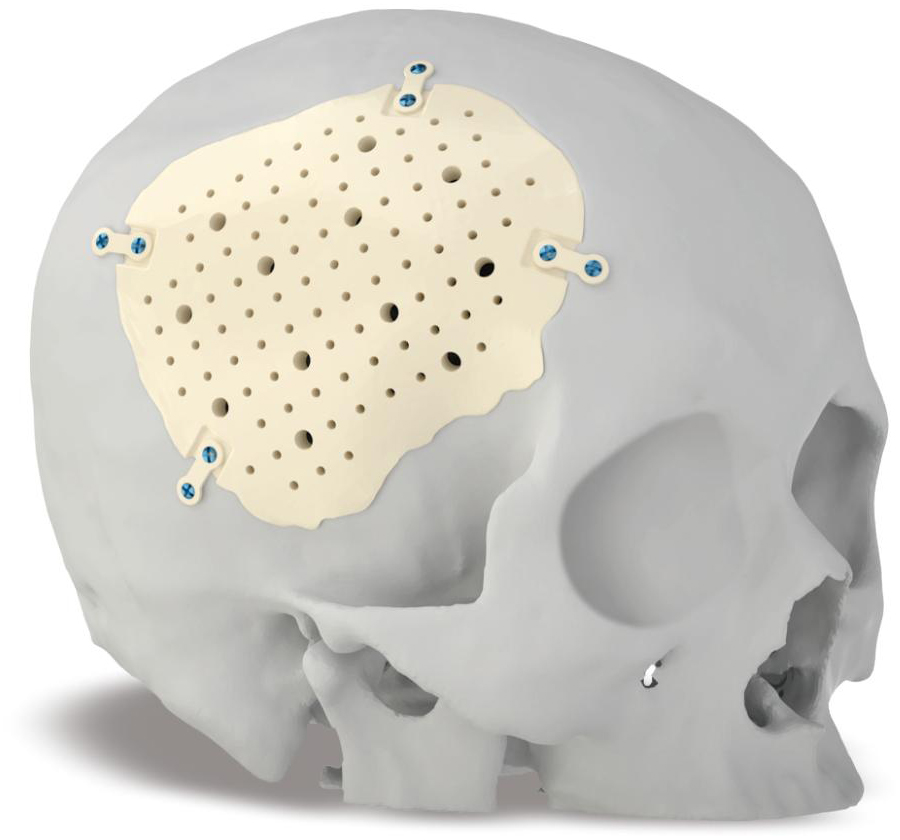 ○嵌入式修補(bǔ),數(shù)字化成型技術(shù)將PEEK材料嵌入骨窗, 做到與缺損區(qū)完美吻合。